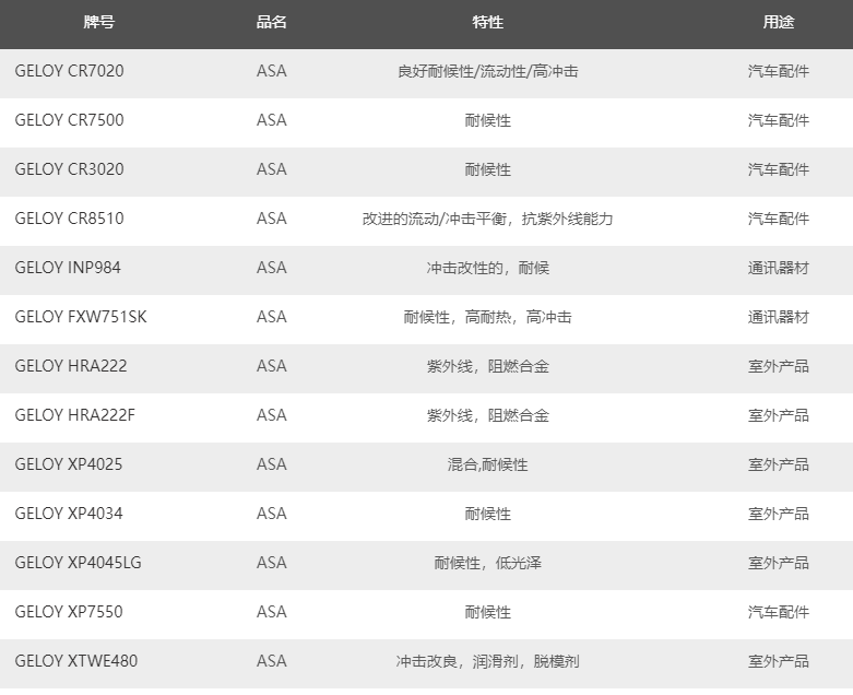 SABIC的Geloy ASA主要牌號