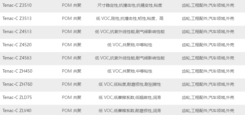 旭化成 Tenac-C POM聚甲醛產(chǎn)品應(yīng)用汽車工業(yè)領(lǐng)域的主要牌號: