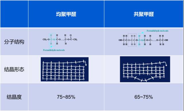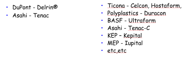 POM分為兩大類(lèi),一類(lèi)為均聚甲醛,以杜邦和旭化成為代表,另一類(lèi)為共聚甲醛,除了上述兩家,其他供應(yīng)商的產(chǎn)品基本都為共聚,旭化成是個(gè)NB公司,均聚和共聚都生產(chǎn)。這里簡(jiǎn)單介紹一下均聚和共聚的特點(diǎn),以便更準(zhǔn)確的選擇材料。