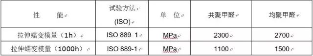 從官方數(shù)據(jù)來(lái)看,共聚甲醛和均聚甲醛的蠕變強(qiáng)度對(duì)比如下: