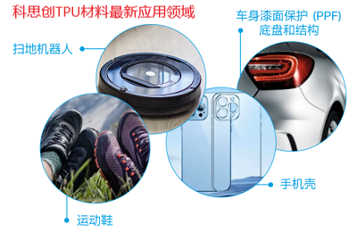 科思創(chuàng)TPU材料具備眾多性能,用途廣泛,其中包括運動鞋鞋底、掃地機器人、智能音箱和手機殼等電子設(shè)備,以及各類汽車應(yīng)用。