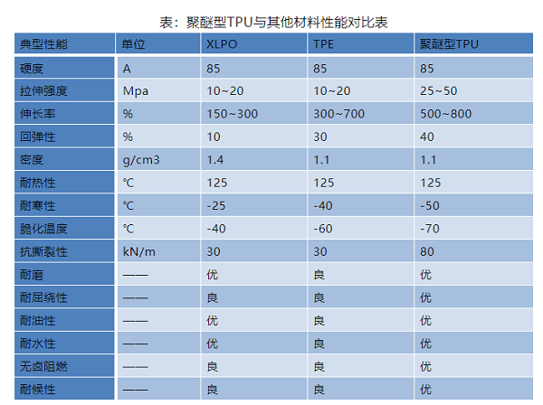 二、護套材質(zhì)TPU與其它材質(zhì)的性能對比