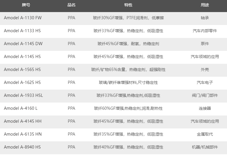 索爾維生產(chǎn)的塑膠種類多,旗下的商標牌號有好幾個,又各有不同的產(chǎn)品特性,如何快速的找到需要索爾維Amodel PPA材料塑膠原料牌號?以下給提供是索爾維Amodel PPA塑料的常用系列及其產(chǎn)品特性。