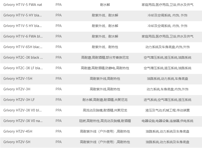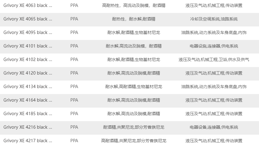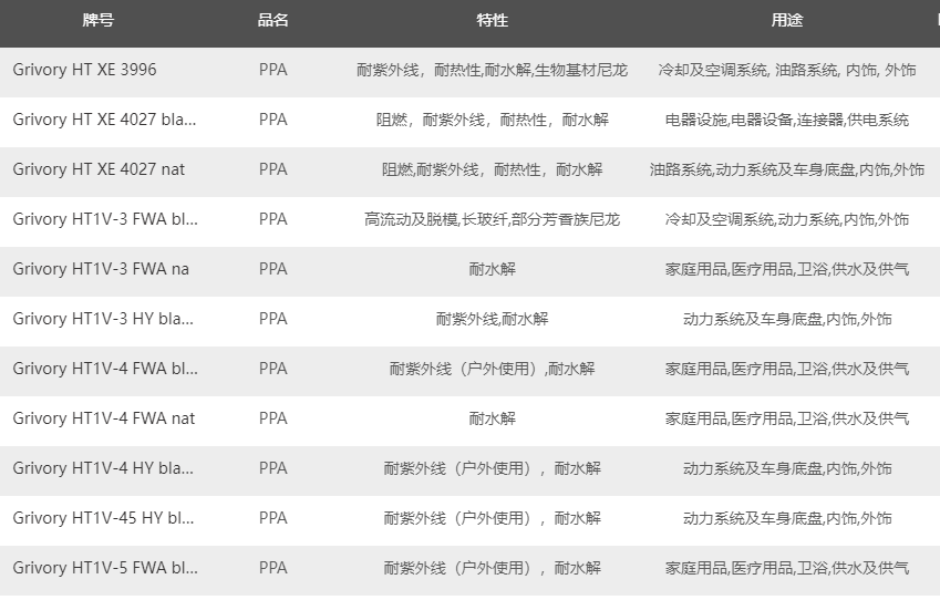 如何快速的找到需要瑞士-EMS Grivory HT PPA原料牌號?以下給提供是瑞士-EMS Grivory HT PPA塑料的原料牌號及其產(chǎn)品特性如下表。