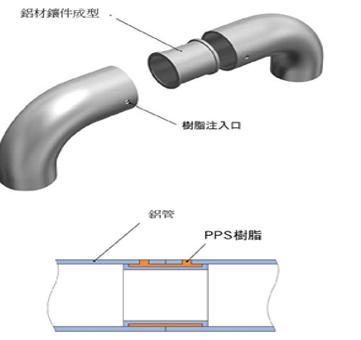 PPS在汽車NMT的應用------汽車PPS渦輪排氣管,利用金屬接合替代焊接能夠縮短接合周期,3D形狀易接合,有利于進行處理,降低產品的自重。
