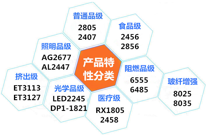 MI=4.0 ; 良好的耐水解性;注塑成型和擠出成型; 可提供透明, 半透明和不透明顏色