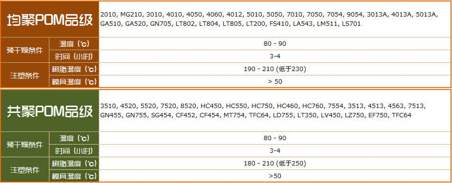 | 快速周期型 | POM 5050 | 標(biāo)準(zhǔn)流動等級,具有高結(jié)晶率,可提高生產(chǎn)效率 | 錄影機零件,座位安全帶零件,齒輪 |