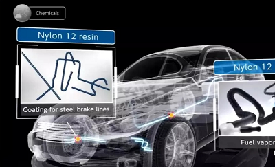 尼龍 12 可廣泛應(yīng)用于汽車流體輸送管線,包括燃油管線、離合器管線、真空剎車增壓器管路、空氣剎車管路、電池冷卻液管線以及上述管線的接頭,因其安全可靠,是優(yōu)良的汽車輕量化材料。