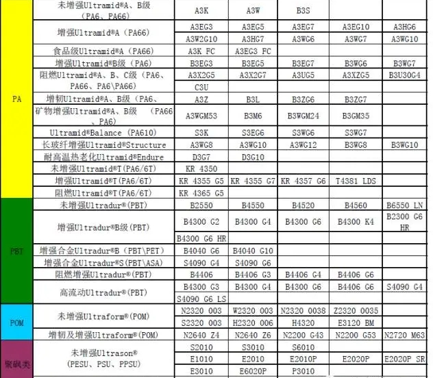 巴斯夫主要的工程塑料有以下幾種:非晶工程塑料PES/PSU,結(jié)晶工程塑料PA、POM、PBT、PET。