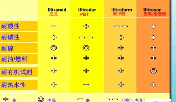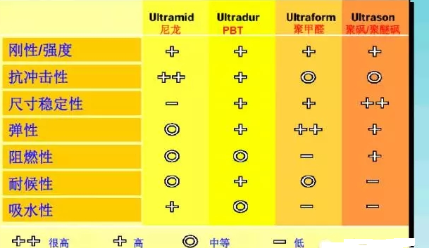 二、巴斯夫四類工程塑料的性能對(duì)比