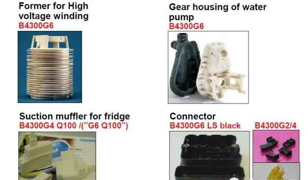 玻纖增強(qiáng)PBT主要應(yīng)用在水泵齒輪殼、連接器、高壓繞組線圈架、 塑料吸氣消音器等。