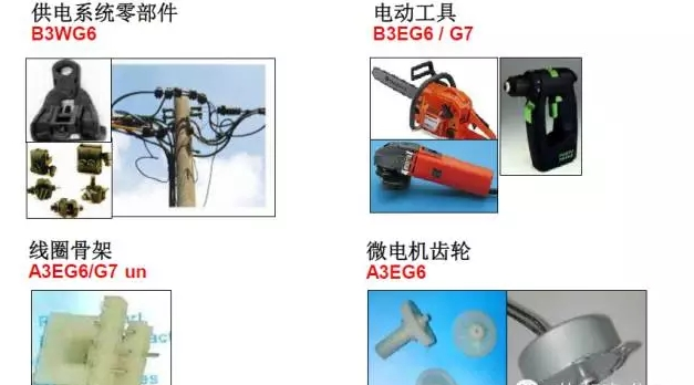 玻纖增強(qiáng)尼龍主要應(yīng)用:供電系統(tǒng)零部件、電動(dòng)工具、線圈骨架、微電機(jī)齒輪等。