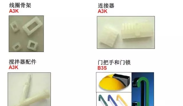 無(wú)填充型尼龍主要的應(yīng)用:線圈骨架、連接器、攪拌器配件、門把手和門鎖等。