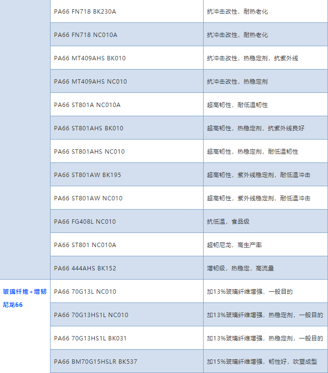 杜邦 Zytel? PA66產(chǎn)品牌號及功能
