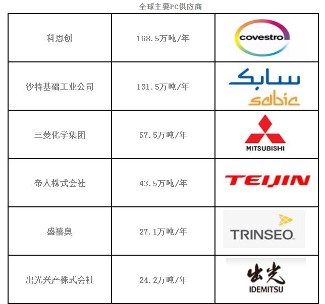 由于聚碳酸酯生產(chǎn)技術門檻較高,產(chǎn)能主要集中在跨國化工企業(yè),供給高度集中。據(jù)相關統(tǒng)計,全球前六大公司產(chǎn)能占比高達90%以上。由于國際巨頭對技術嚴格控制,因此國內(nèi)聚碳酸酯裝置生產(chǎn)多由外企投資或中外合資。