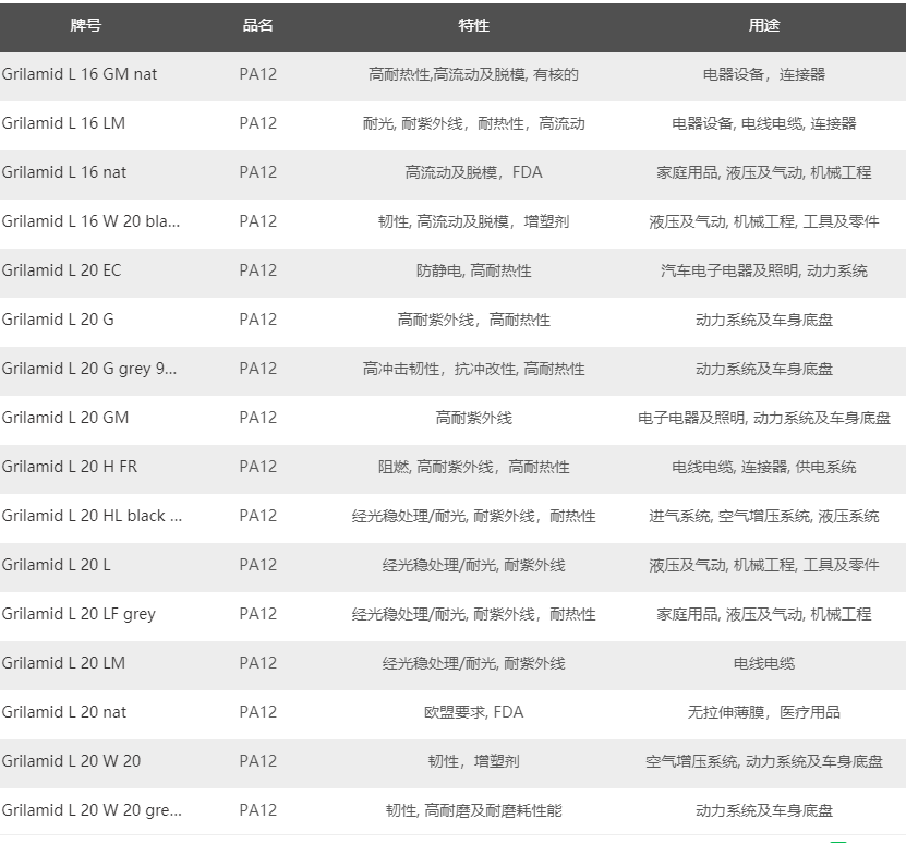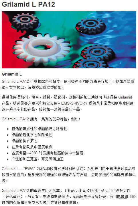 EMS-GRIVORY 是頂級的高性能聚酰胺專業(yè)制造商和供應(yīng)商,提供應(yīng)用范圍極廣的聚酰胺材料,Grilamid系列為尼龍PA12塑膠原料。