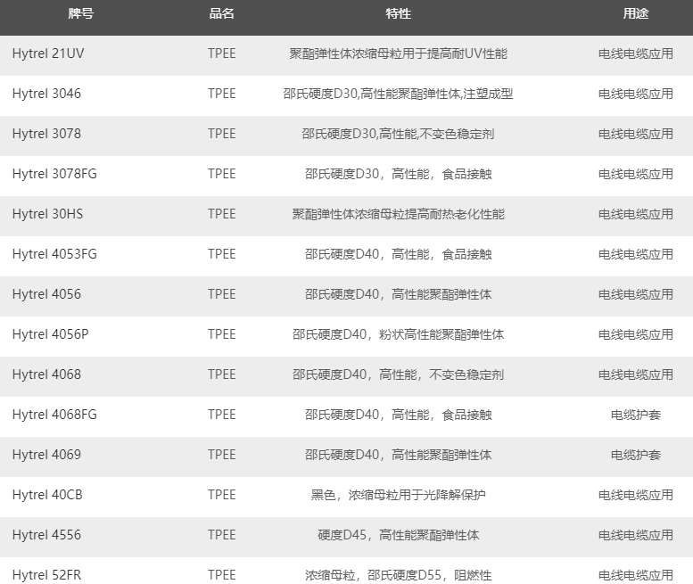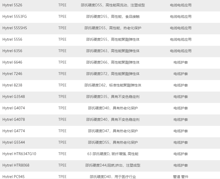 杜邦的TPEE產(chǎn)品及牌號(hào)