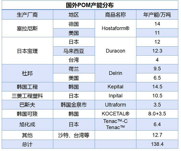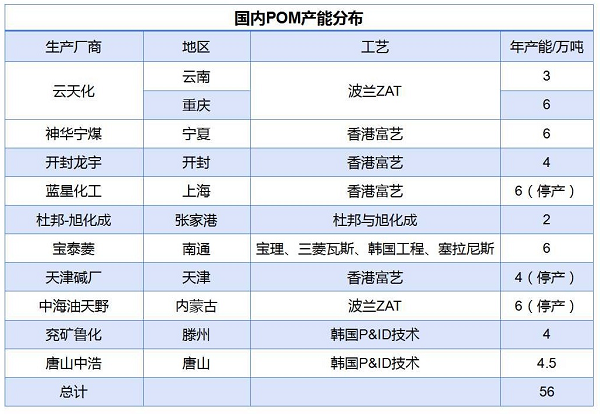 表2 國(guó)內(nèi)POM產(chǎn)能分布