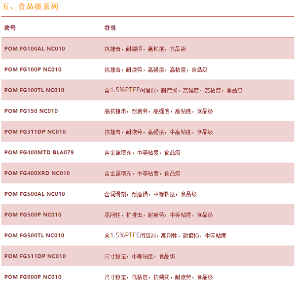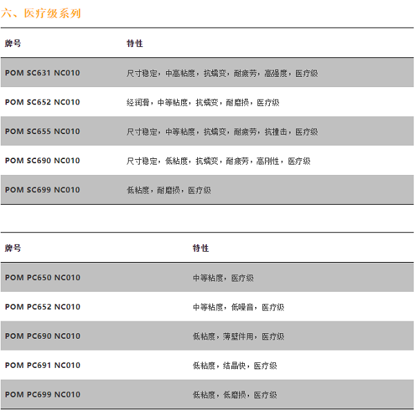 其次,杜邦的部分聚甲醛還按照其用途分類(lèi):FG食品級(jí)、SC醫(yī)療級(jí)、PC醫(yī)療級(jí),SC和PC應(yīng)該是有差別的。