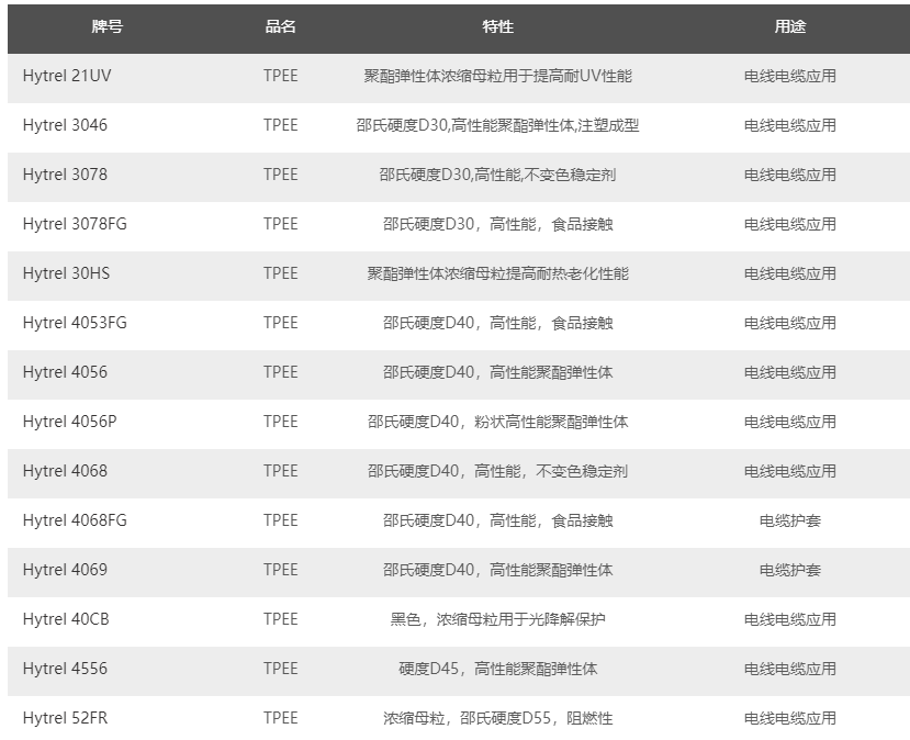 Hytrel是Dupont工程塑料系列中的一種聚酯彈性體。