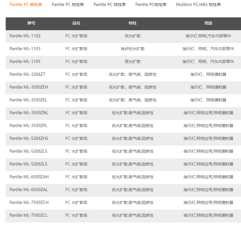 日本-帝人塑料PC牌號大全
