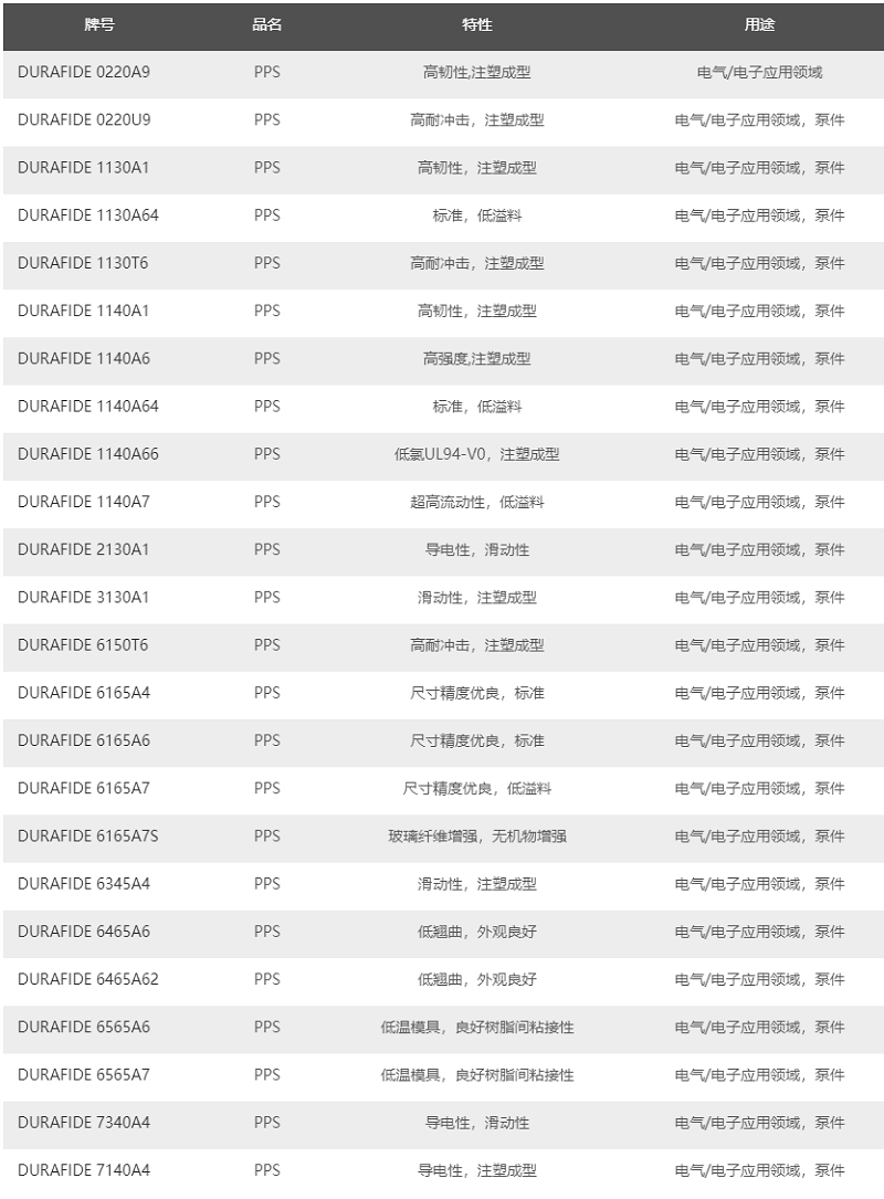 日本-寶理 Durafide PPS產(chǎn)品牌號及應(yīng)用: