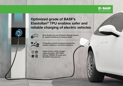 巴斯夫?qū)斐錁兜某潆姌尵€優(yōu)化了新牌號,推出Elastollan ?熱塑性聚氨酯(TPU),相比傳統(tǒng)的快速充電槍線,新牌號使槍線更柔軟、輕便,消費(fèi)者為電動汽車充電更容易。