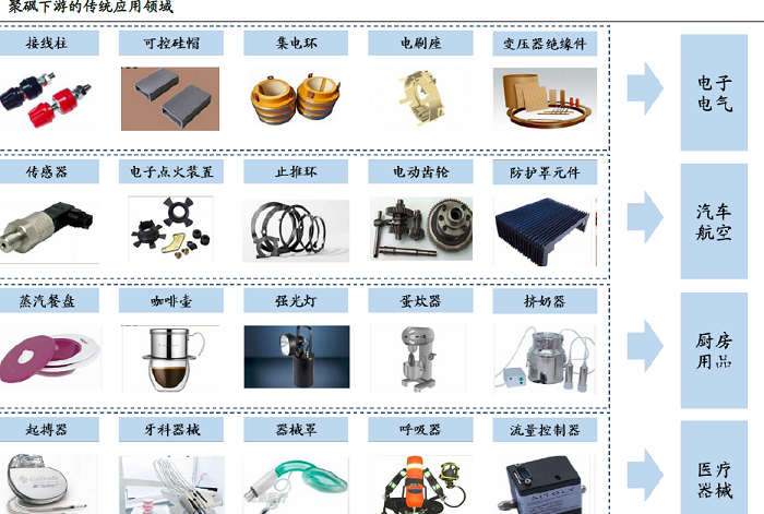 聚砜傳統(tǒng)應(yīng)用領(lǐng)域廣,集中在醫(yī)療食品汽車電子領(lǐng)域