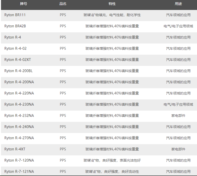 索爾維Ryton PPS系列產(chǎn)品的牌號(hào)、性能參數(shù)及主要應(yīng)用