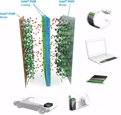 索爾維的Solef? PVDF材料應(yīng)用于鋰離子電池、光伏和薄膜、水暖、膜、線纜、半導(dǎo)體等衛(wèi)生保健行業(yè) 。