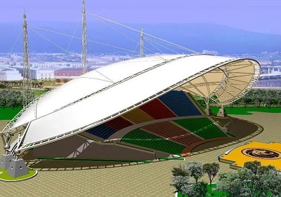 PVDF膜防火性能優(yōu)異,能承受 -40到+70度的溫度變化,被應(yīng)用在大型充氣膜結(jié)構(gòu)建筑中。它自重極輕,每平米自重3KG以下,為鋼的三十分之一。它在施工過(guò)程中沒(méi)有建筑垃圾輸出。普通膜材的透光率是5%,它的透光率可達(dá)25~30%,利用自然光節(jié)省照明費(fèi)用。它具有“自我清潔”的功能,灰塵不易粘附。