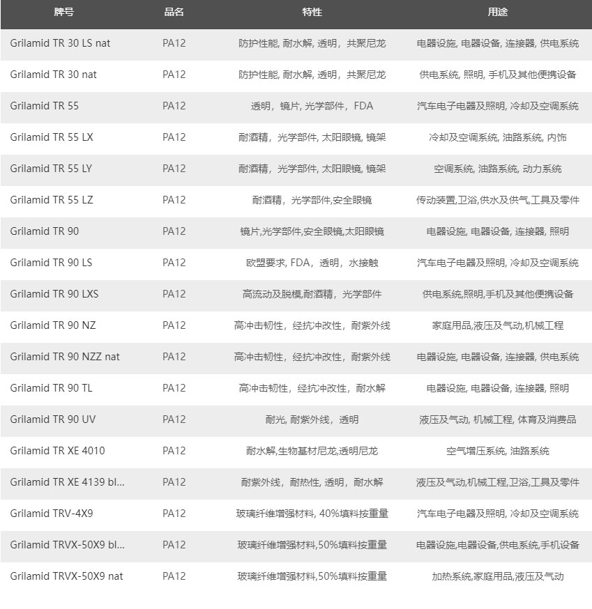 瑞士-EMS Grilamid TR PA12產(chǎn)品的型號及應(yīng)用